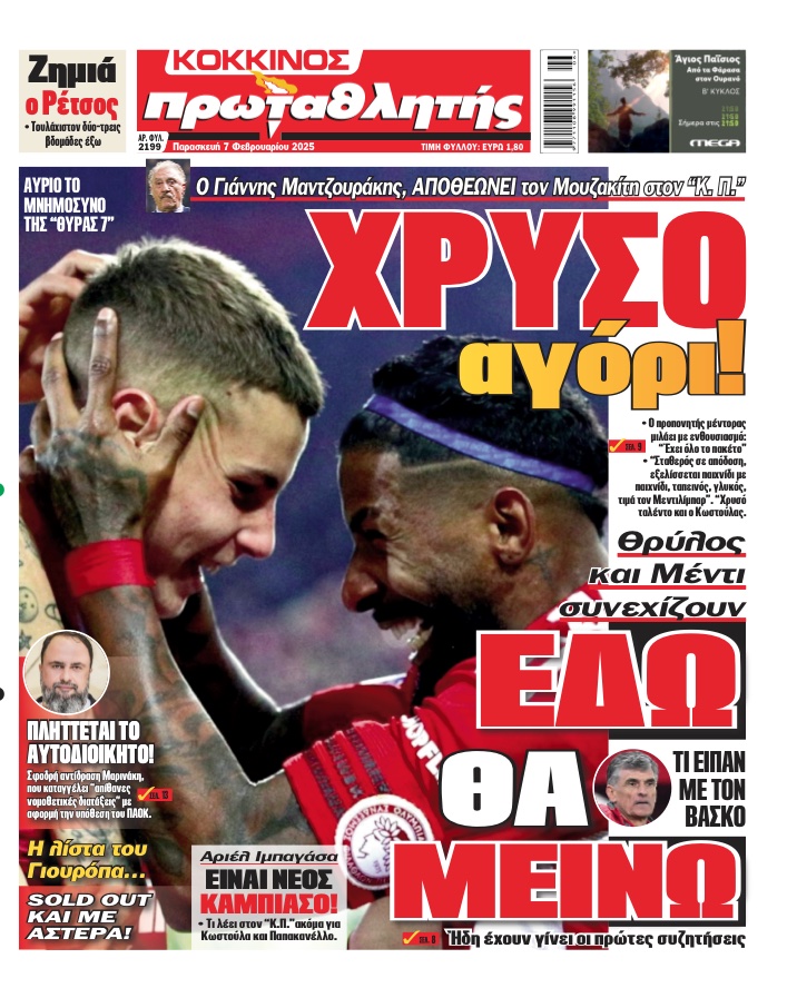 Διαβάστε σήμερα στον Πρωταθλητή που κυκλοφορεί :